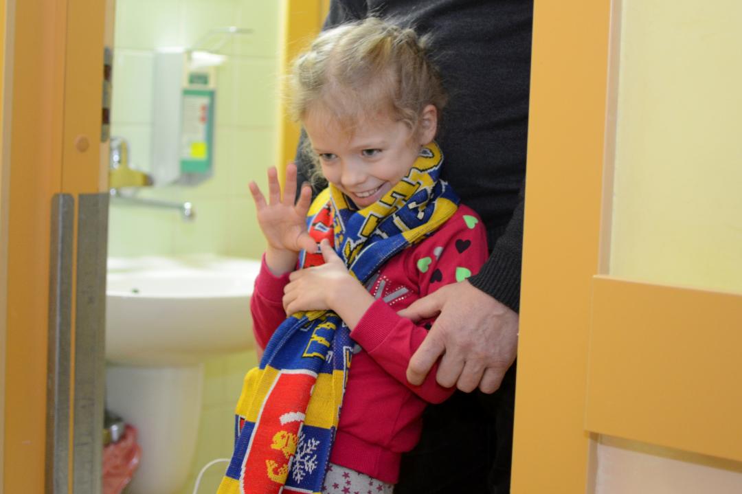 Drugiego dnia spotykamy się, pakujemy paczki i wyruszamy w stronę Pucka, gdzie na oddziale dziecięcym leży 7 maluchów. Jak zwykle zostajemy bardzo ciepło przyjęci. Tym razem, do grona pomocników Mikołaja dołącza również Przemek Stolc, który wraz z Żółto-Niebieskim odwiedza każdego chorego na oddziale. Dzieci rozpromieniają się na widok Mikołaja, przymierzają szaliki i pozują do zdjęć. Wizyta choć krótka na pewno pozostawi miłe wspomnienia.